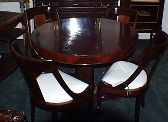 F125. C/1840 French Empire center table. Mahogany with bronze dore band.