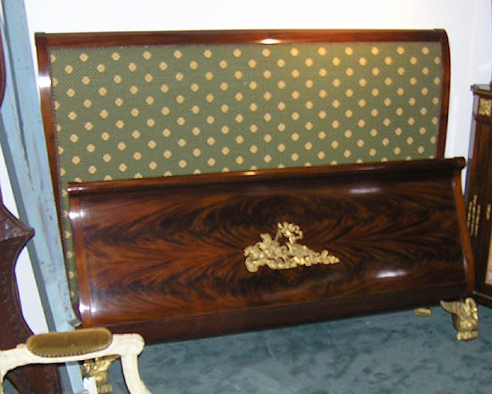 F345. 19th Century French Empire Honduran mahogany queen bed.